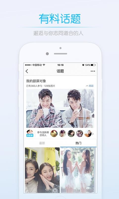 加入自己喜欢的话题下方,在话题中可以寻找到更多朋友;