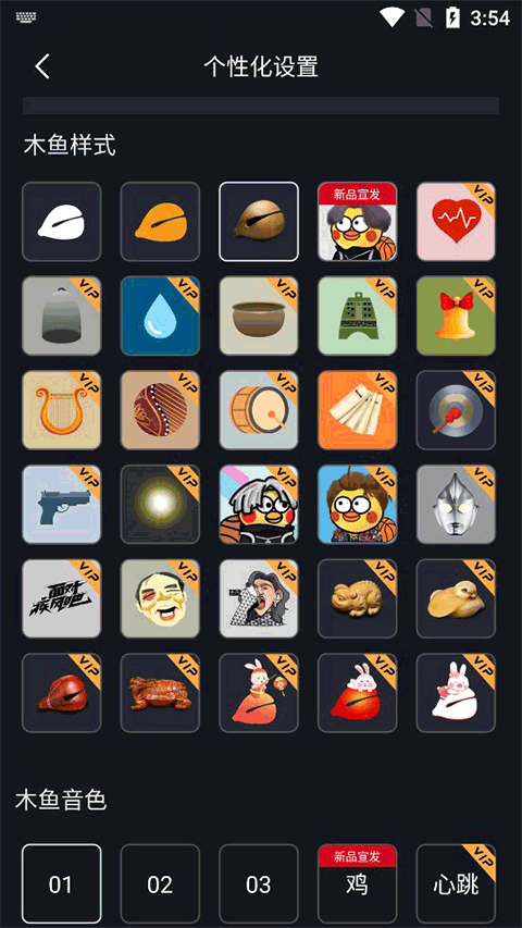 在个性化设置界面内往下滑动,找到木鱼音色,然后选择其他的音色就可以了。