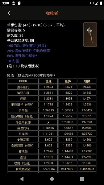 2. 增加了掉落查询功能,可以在每个物品的详情页看到掉落该物品的怪物和掉率