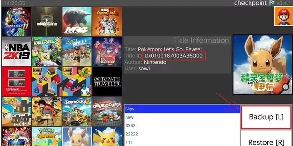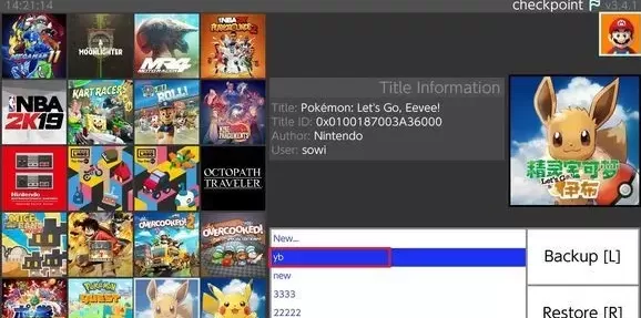 找到游戏按A,光标停在NEW…上,然后按L键,或者直接点右边的Backup [L]这个按钮。