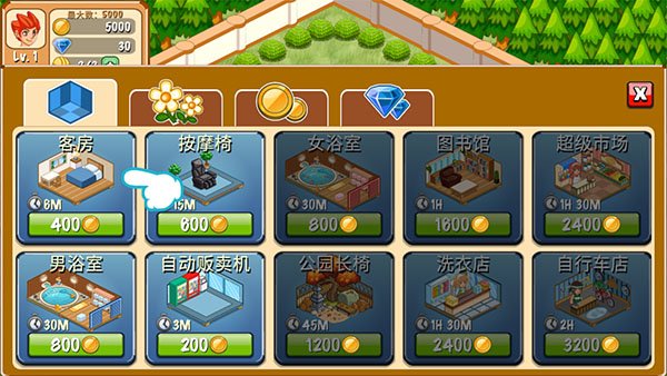 为你的度假酒店添加餐厅,或者是添加浴室,各种设施也可以进行升级的哦。