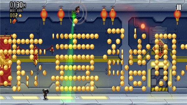 4.玩家可以通过收集金币获得高分,并用装来定义自己的形象,同时要避免激光、电网和制导导弹等危险。