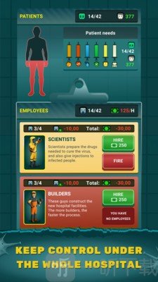 这是一款超好玩的模拟经营类游戏——《僵尸医院大亨》。在游戏中,你能够雇佣人员,着手建造各种设施,治愈游戏里的感染者,同时努力避免遭受爆发攻击,还要为医护人员配备高质量的设备。快来体验一番吧!