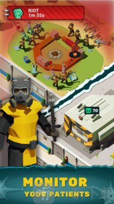 僵尸医院大亨是一款以僵尸治疗为主题设定全新模拟经营类养成游戏。游戏中其不仅拥有着整体简约高清的3D画风、场景、及人物等设计,提供了各种各样的僵尸群体、多样性的pk挑战、和更多的冒险活动等你参与,而且针对于玩法上,相比较于治疗普通病人经营游戏不大一样的是,如果在治愈过程中不给予僵尸足够的关注,安抚他们的情绪,提高病房的舒适度,并为他们提供一些可以消遣的项目,他们很有可能暴走咬伤医务人员,直接让这些花大价钱雇来的员工集体下线。故此在游戏中,玩家不仅需要从小型诊所开始,通过不断雇用人员,建造东西,为医护人员提供高质量的设备,比如为病房添置桌椅电视,安装马桶淋浴,升级通风系统等,扩大娱乐场所并装备指挥所,并竭尽所能将其转变为现代化的综合大楼,以应对世界上最危险的患者之外。你也还需要不断的与各个强大的丧尸进行游戏比拼,找到了对该病毒的治疗方法,治愈感染者并尝试避免爆发攻击。让他们最终不变成僵尸,为人类最终的希望不断的努力!