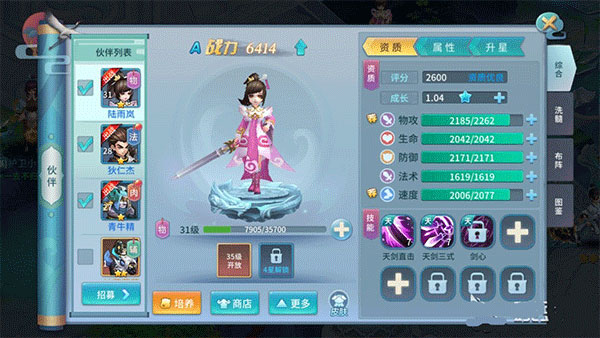 累计登录第二天会送S级猪八戒,第七天则会送SS级唐僧。可以使用普通银两、伙伴经验果、八宝粥、臭豆腐给伙伴们升级等级。图鉴中可以查看伙伴们达到一星、四星、六星不同阶段的形态,以及变异之后的效果。